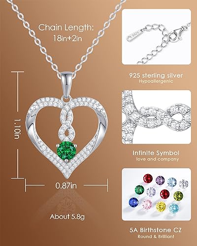 Get yours today!Birthstone Heart Necklaces for Women, 18k Gold Plated and 925 Sterling Silver Infinity Forever Love Pendant Necklaces, Birthday Anniversary Jewelry Gift for Her Mama Wife Mom