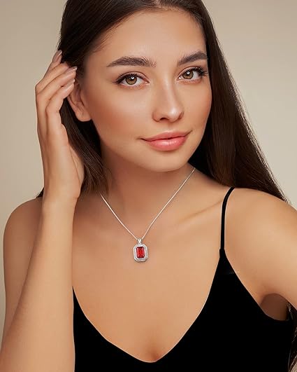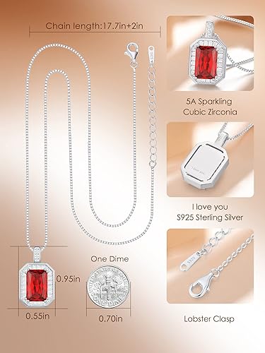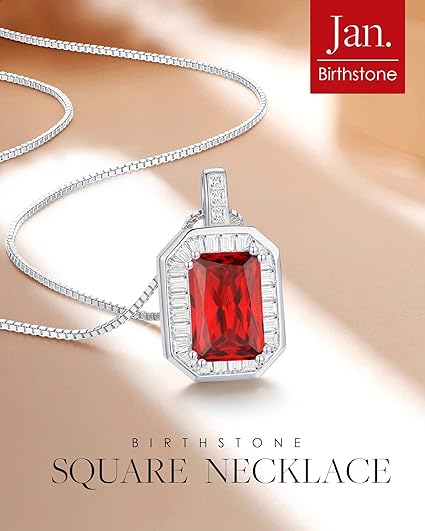 Order your!Square Birthstone Necklaces for Women, 925 Sterling Silver Pendant Necklace for Women, Birthday Anniversary Christmas Jewelry Gift for Women Wife Mom Her