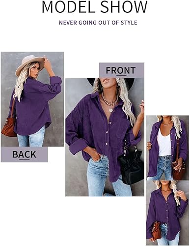 Get 6% off!Womens Shirts Collared Long Sleeve V Neck Button Down Oversized Blouses Tops with Pockets