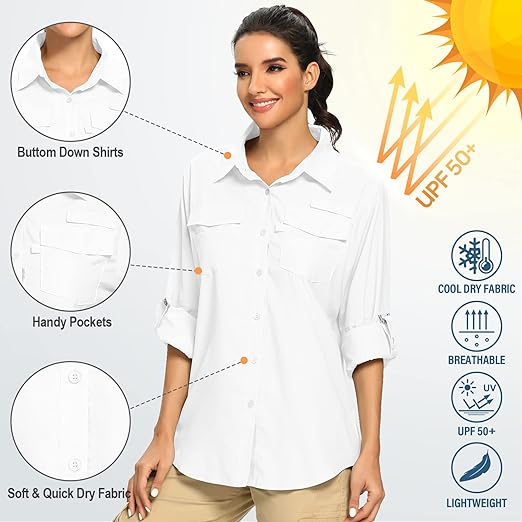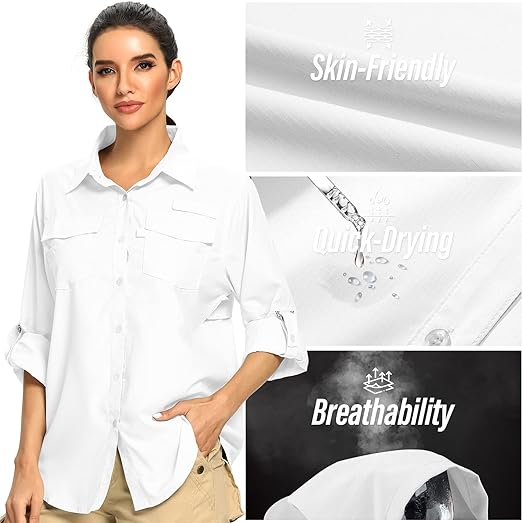 Protecting your skin from the sun’s harmful UV rays is paramount, especially in today’s world where sun safety is a top priority. The Women’s Long Sleeve Sun Protection Shirt is designed with UPF (Ultraviolet Protection Factor) fabric to provide excellent sun protection. With a UPF rating of 50+, this shirt ensures that your skin is shielded from over 98% of harmful UV radiation. Say goodbye to sunburn and premature aging, and embrace a sun-safe lifestyle.